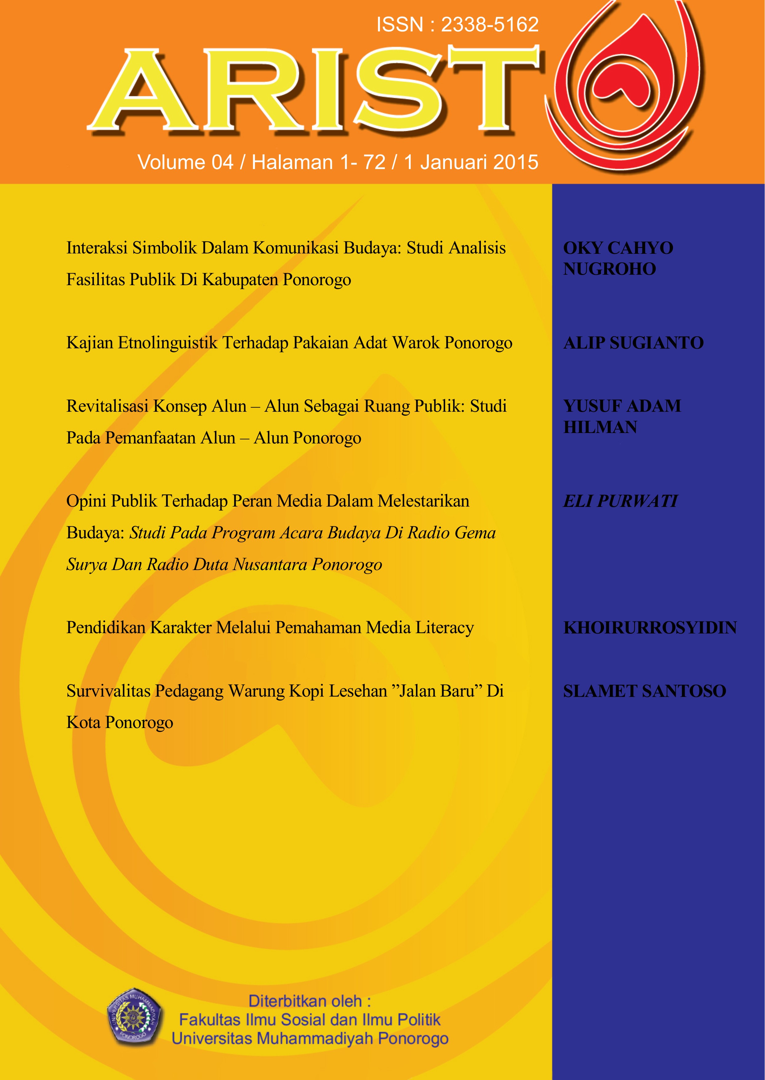 - Penulis mengakui bahwa Jurnal ARISTO berhak sebagai mempublikasikan pertama kali dengan bekerja secara bersamaan dibawah Creative Commons Attribution License yang memungkinkan orang lain untuk membagi pekerjaan dengan pengakuan dari pengarang dan publikasi pertama dalam jurnal ARISTO;