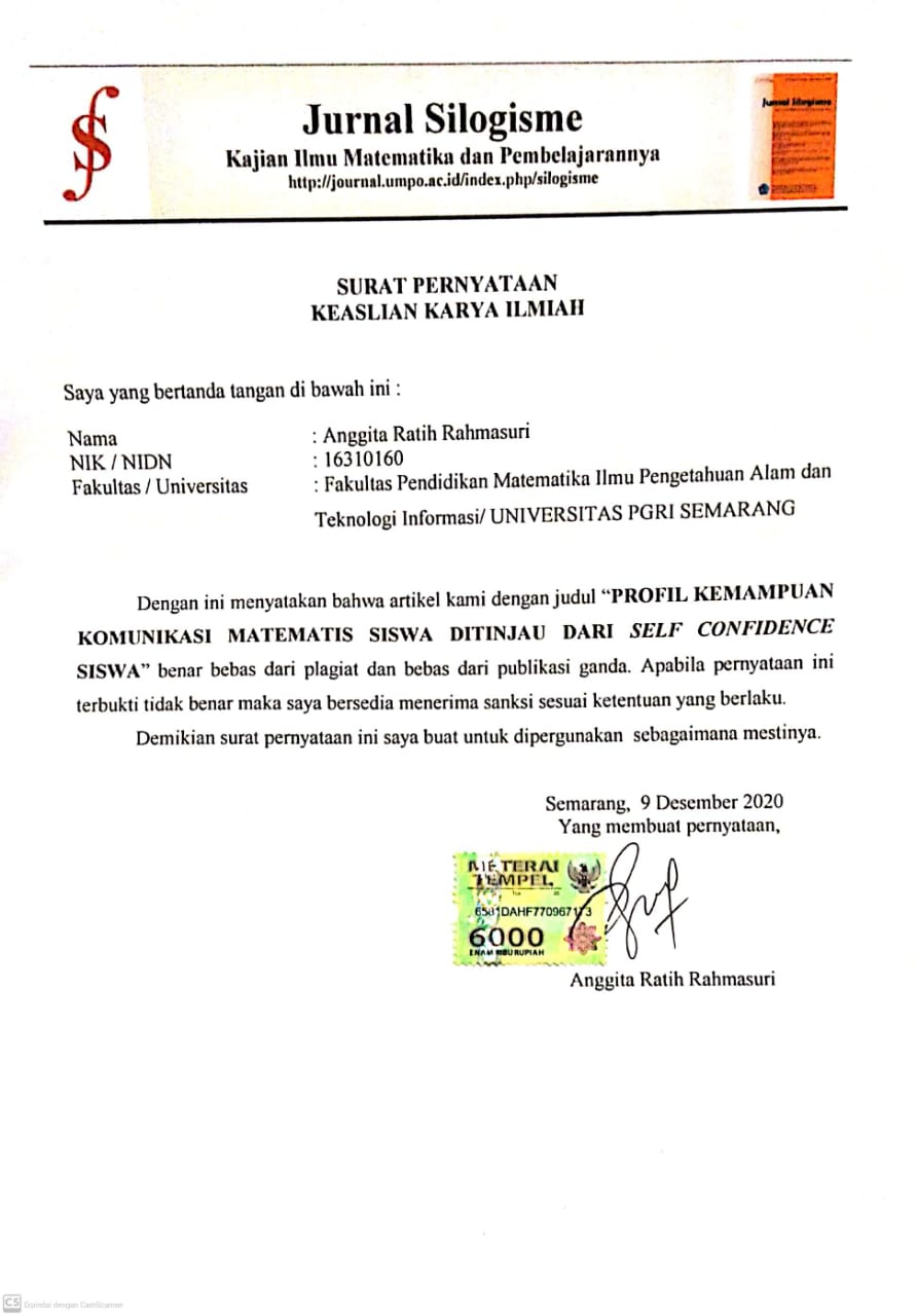 PROFIL KEMAMPUAN KOMUNIKASI MATEMATIS SISWA DITINJAU DARI SELF CONFIDENCE SISWA